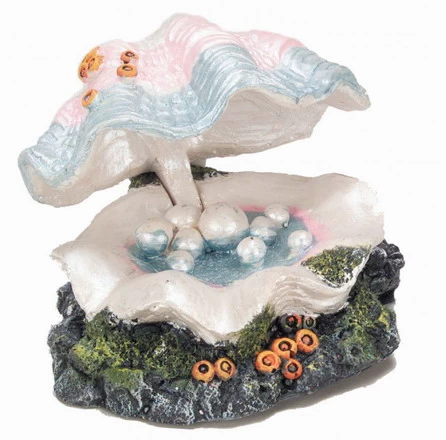 Muschel mit Ausströmer-Anschluß. Durch die Luftblasen aus dem Ausströmer wird der Deckel der Muschel wie von Geisterhand geöffnet und geschlossen.
