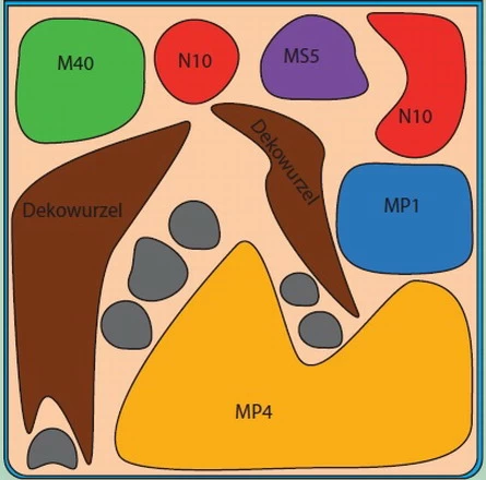 Dekorationsmaterial wie Wurzeln und Steine sind nicht im Lieferumfang enthalten und müssen zusätzlich bestellt werden.