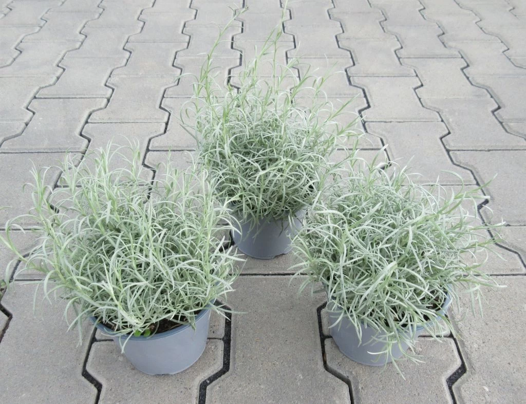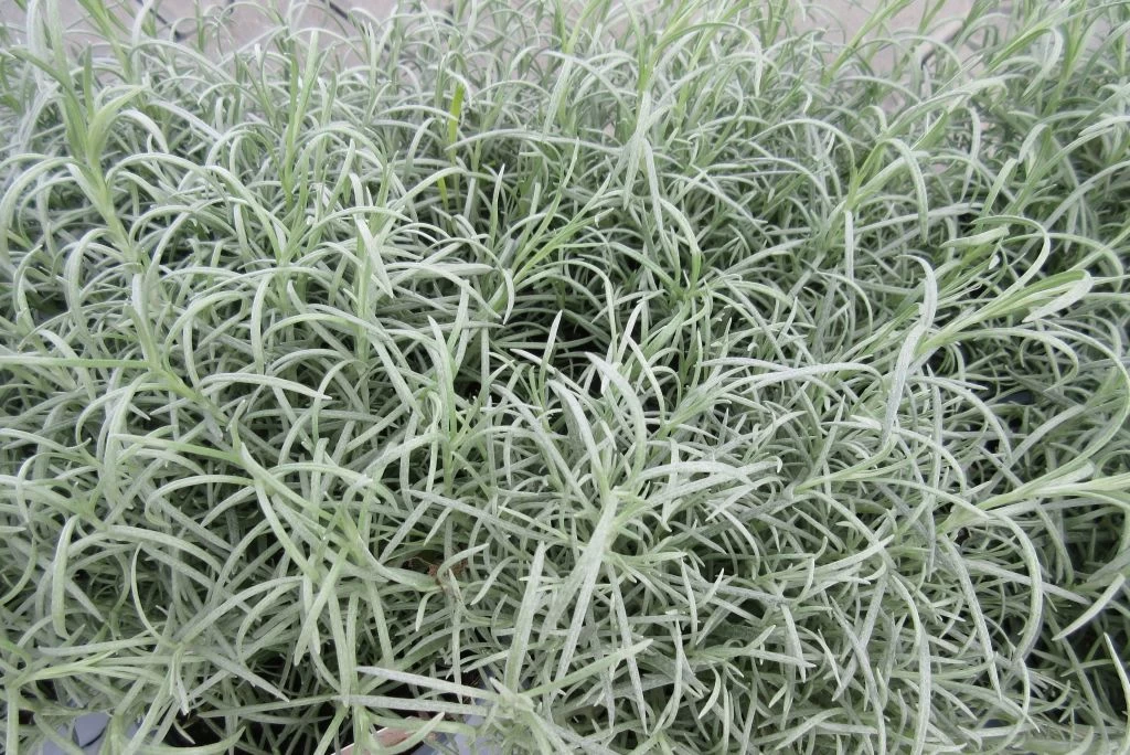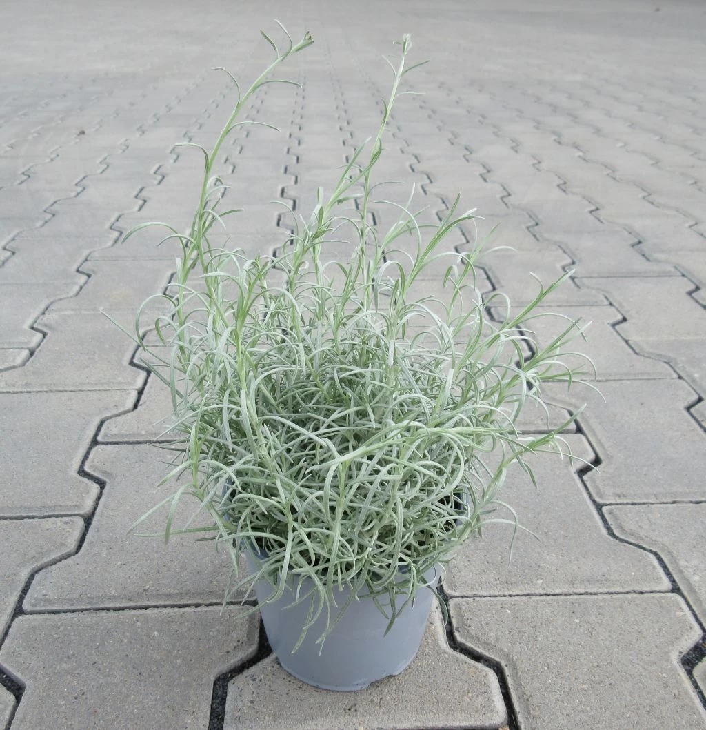 Das wunderschöne Helichrysum italicum ist hier auch italienische Strohblume oder wegen ihres wohlrichenden Duftes, als Currykraut bekannt.