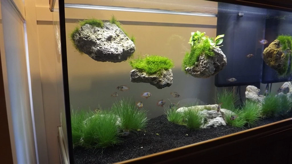 Das Gestein ist naturbelassen und kann, wenn gewünscht, auch mit Moos oder Aufsitzerpflanzen wie Anubias oder Farnen zusätzlich dekoriert werden. Felsen dienen nicht nur zur Dekoration eines Aquariums – viele Aquarienbewohner nutzen die Steine als willkommene Versteckmöglichkeit. Revierbildende Fische können sich zurückziehen und sich so aus dem Weg gehen.