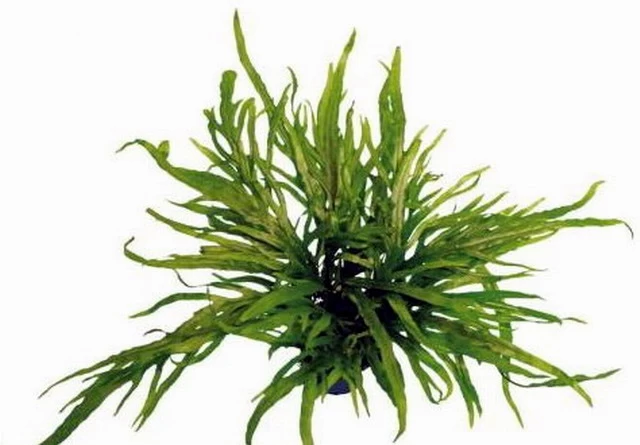 Microsorum pteropus „Trident“ ist eine ungewöhnliche Form des Javafarns, die wahrscheinlich aus Sarawak (Borneo) stammt. Die Blätter dieses kleinwüchsigen Javafarns sind sehr schmal, ähnlich dem „Needle Leaf“-Javafarn und an den Blattenden fiederartig geteilt. Dadurch entsteht eine ornamentale Wirkung. Auf einer freistehenden Wurzel aufgebunden, wirkt diese Javafarn Schönheit besonders natürlich. Aufgrund der geringeren Größe und des langsamen Wachstums ist der Pflegeaufwand sehr gering, auch bei der Beleuchtung ist die Sorte sehr genügsam und wächst in schattigen Bereichen noch sehr gut. Ideal für Aquascaping und durch die Wuchshöhe von ca. 1015 cm bestens für Nano Aquarien geeignet.
