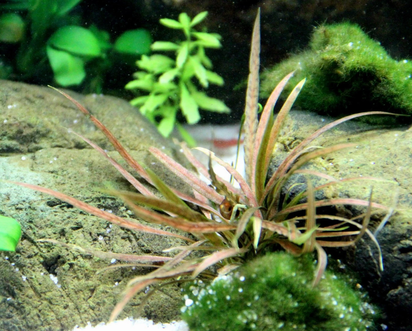 Die Heimat dieser kleinen Cryptocoryne ist Asien, wo sie u. a. in Thailand natürlich vorkommt. Die schmalen, rotbraunen Blätter haben deutliche schwarze Zeichnungen und hübsch gewellte Blattränder. Jedes Blatt wird 1 – 3 cm breit und bis zu 15 cm lang. Sie geben der Pflanze eine leichte und graziöse Optik, die sich sehr schön mit anderen Pflanzen im Aquarium kombinieren lässt und für attraktive Kontraste sorgt. Wie viele andere Cryptocorynen kommt auch diese Pflanze unter den weitaus meisten Bedingungen zurecht und gedeiht sogar bei sehr schlechten Lichtverhältnissen. Unter solchen Voraussetzungen wächst sie jedoch sehr langsam.